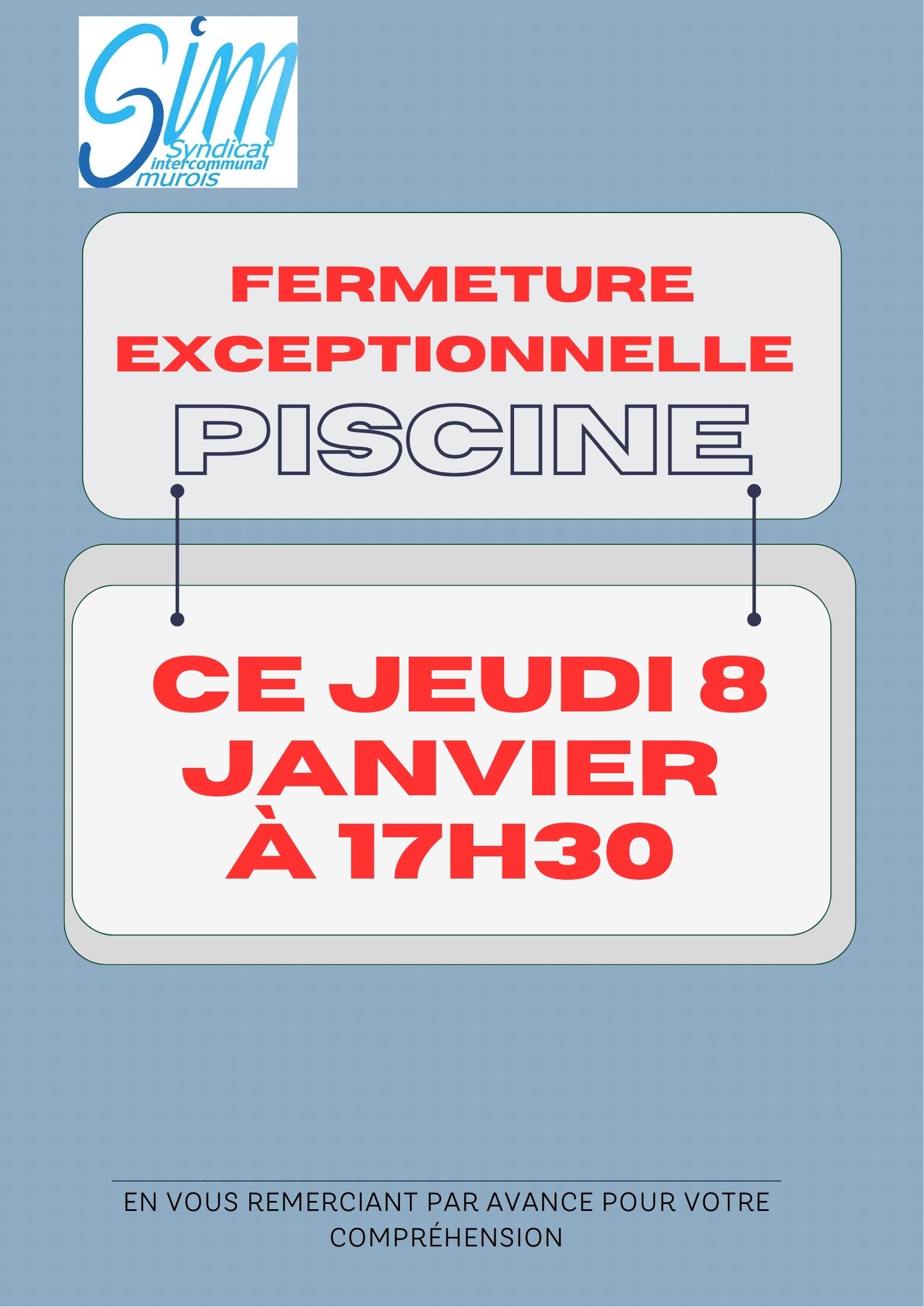 fermeture 8 janvier 2026/dans Piscine /par Responsable https://simurois.fr/wp-content/uploads/2017/10/LOGO-300x233.png 0 0 Responsable https://simurois.fr/wp-content/uploads/2017/10/LOGO-300x233.png Responsable2026-01-08 11:19:072026-01-08 11:19:14fermeture